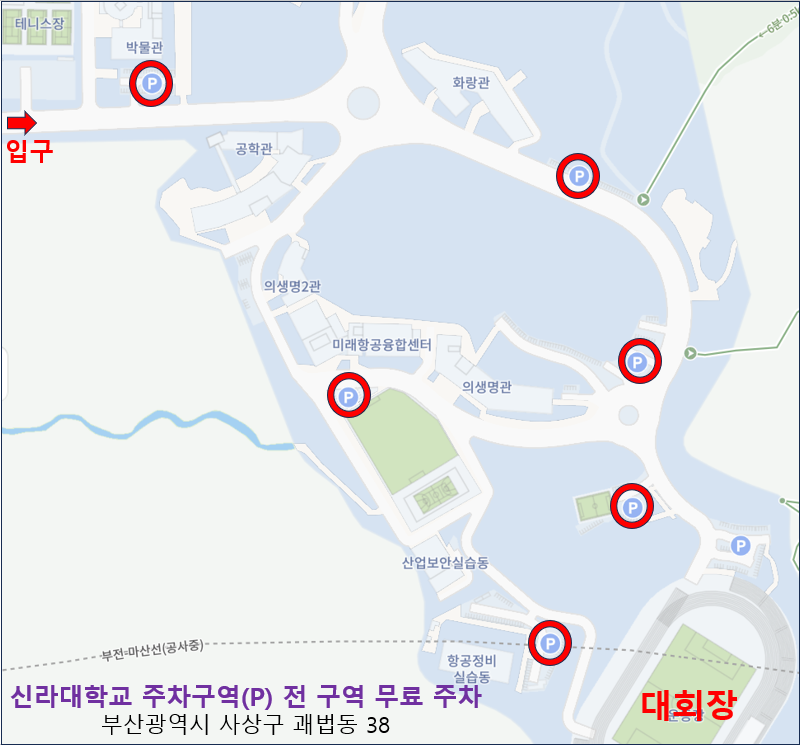 주차 신라대학교 전역 무료 주차 가능